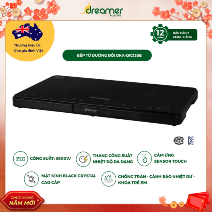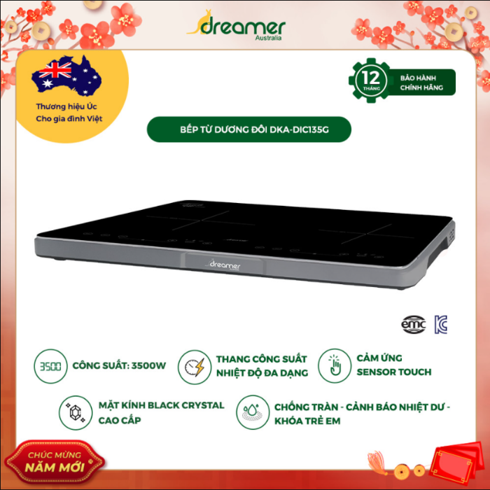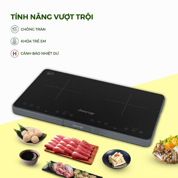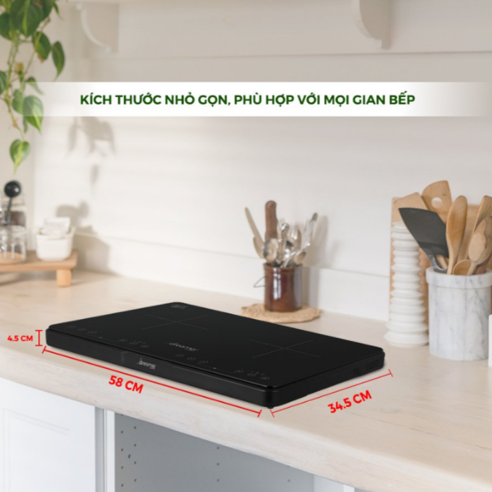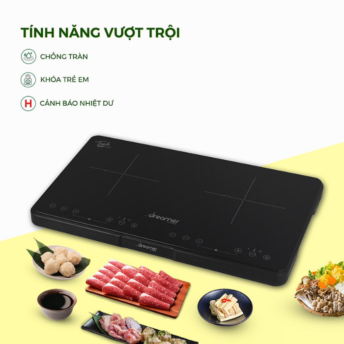 - Công suất mạnh mẽ hai vùng nấu lên đến 3500W