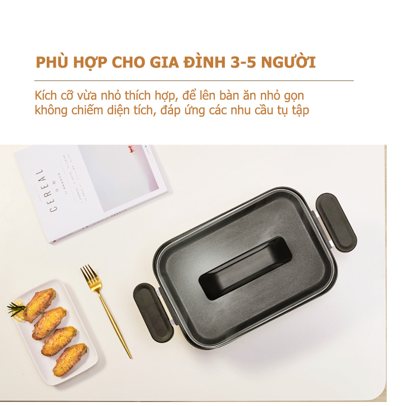 Nồi lẩu nướng điện đa năng 2 lòng Qcooker được trang bị dung tích lên đến 3L đáp ứng đầy đủ nhu cầu thưởng thức lẩu hoặc nướng cho bữa tiệc từ 2-4 người trong gia đình.