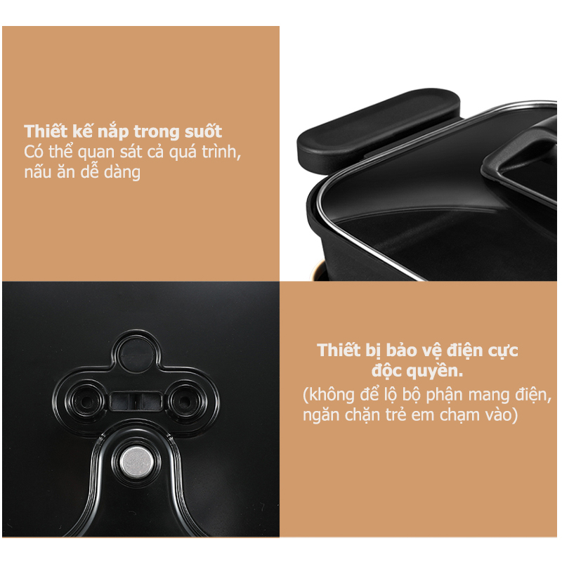 Nồi có 2 lòng nông và sâu phù hợp với mọi nhu cầu sử dụng của gia đình bạn Thiết kế nồi lẩu đa năng tiện lợi, vật liệu an toàn cho sức khỏe gia đình