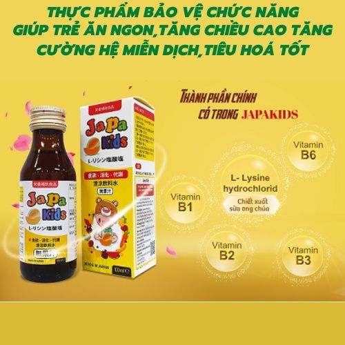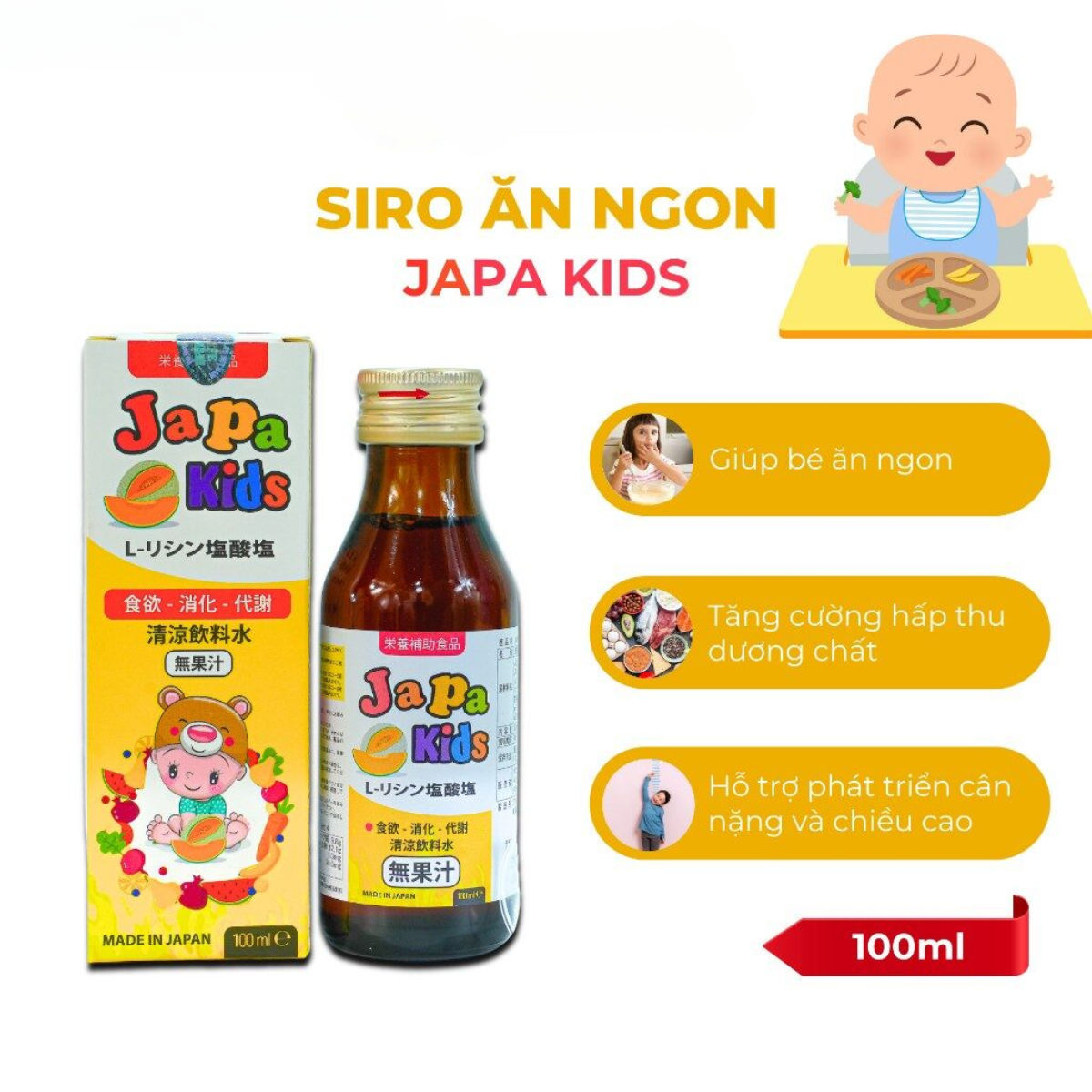 Siro biếng ăn Nhật Bản Japa kids Là sản phẩm nhập khẩu nguyên hộp từ Nhật Bản. Sản phẩm số 1 tại Nhật Bản có tác dụng chấm dứt biếng ăn, phát triển toàn diện về chiều cao, cân nặng và trí tuệ cho trẻ. Chiết xuất từ sữa ong chúa.