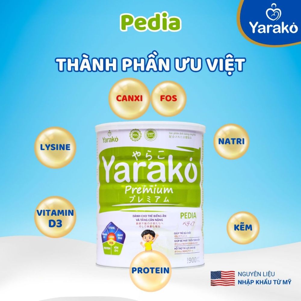 Sữa Tăng Cân Cho Bé YARAKO PREMIUM PEDIA Hỗ Trợ Dinh Dưỡng Cho Trẻ Biếng Ăn Và Tăng Cân Nặng Hộp 400g